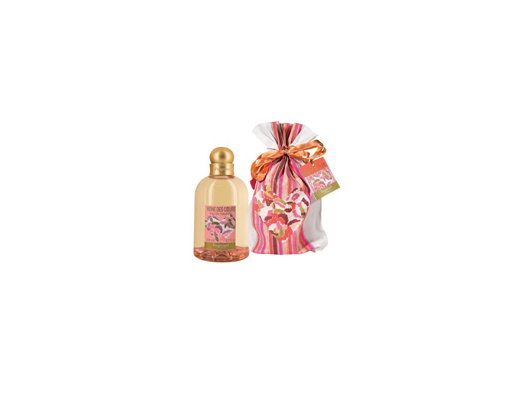 Luxusní toaletní voda REINE DES COEURS v líbivém sáčku a lahvičce s rozprašovačem o obsahu 200 ml. V hlavě parfému se zrodila broskev s ostrým růžovým pepřem, srdce prafému skrývá pomerančový květ, růži a Ylang Ylang a v pozadí nalezneme pižmo. V tomto srdcovém království je královnou žena.