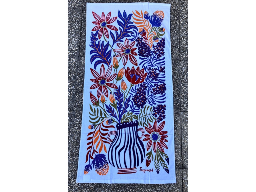 Tento set z designové kolekce Fragonard s motivy květů obsahuje tašku na špinavé prádlo (54 x 42 cm) a je vyrobený ze směsi bavlny, polyesteru a viscosy, skleněnou podložku pod mýdlo a osušku ze 100% bavlny o rozměru 140 x 68 cm.