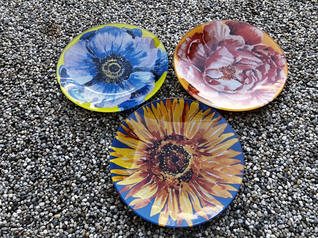 Sada 3 skleněných dezertních talířků s motivy květin z limitované kolekce Fragonard design.