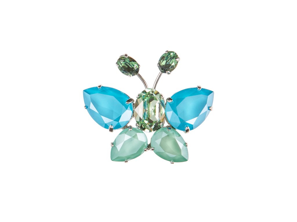 Překrásný a elegantní náhrdelník ve tvaru motýla z nové kolekce prstenů a náhrdelníků Rosy Templin s názvem "Miss Butterfly". Tento jedinečný krasavec, který podtrhne kouzlo nejenom letních měsíců je široký 4 cm a vysoký cca 3,5 cm. Tombakové postříbřené tělo je ručně pájené přímo v Německu a kombinace starorůžových, olivových a růžových křišťálů pochází z dílny Swarovski. K dispozici několik barevných variant.