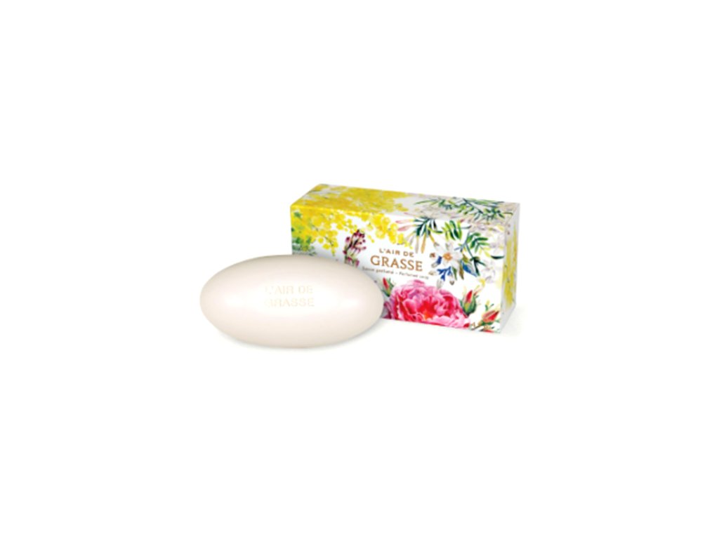 Limitované mýdlo vytvořené v rámci kolekce vůně roku 2026 L Air de Grasse. Vůně z Grasse oslavuje sté výročí parfumerie Fragonard a toto mýdlo v sobě ukrývá poslanou kytici tohoto výročí. Ideální doplněk ke stejnojmenné toaletní vodě.